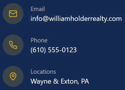 The William Holder Realty Team is a premier real estate group serving Pennsylvania, Delaware, and New Jersey.